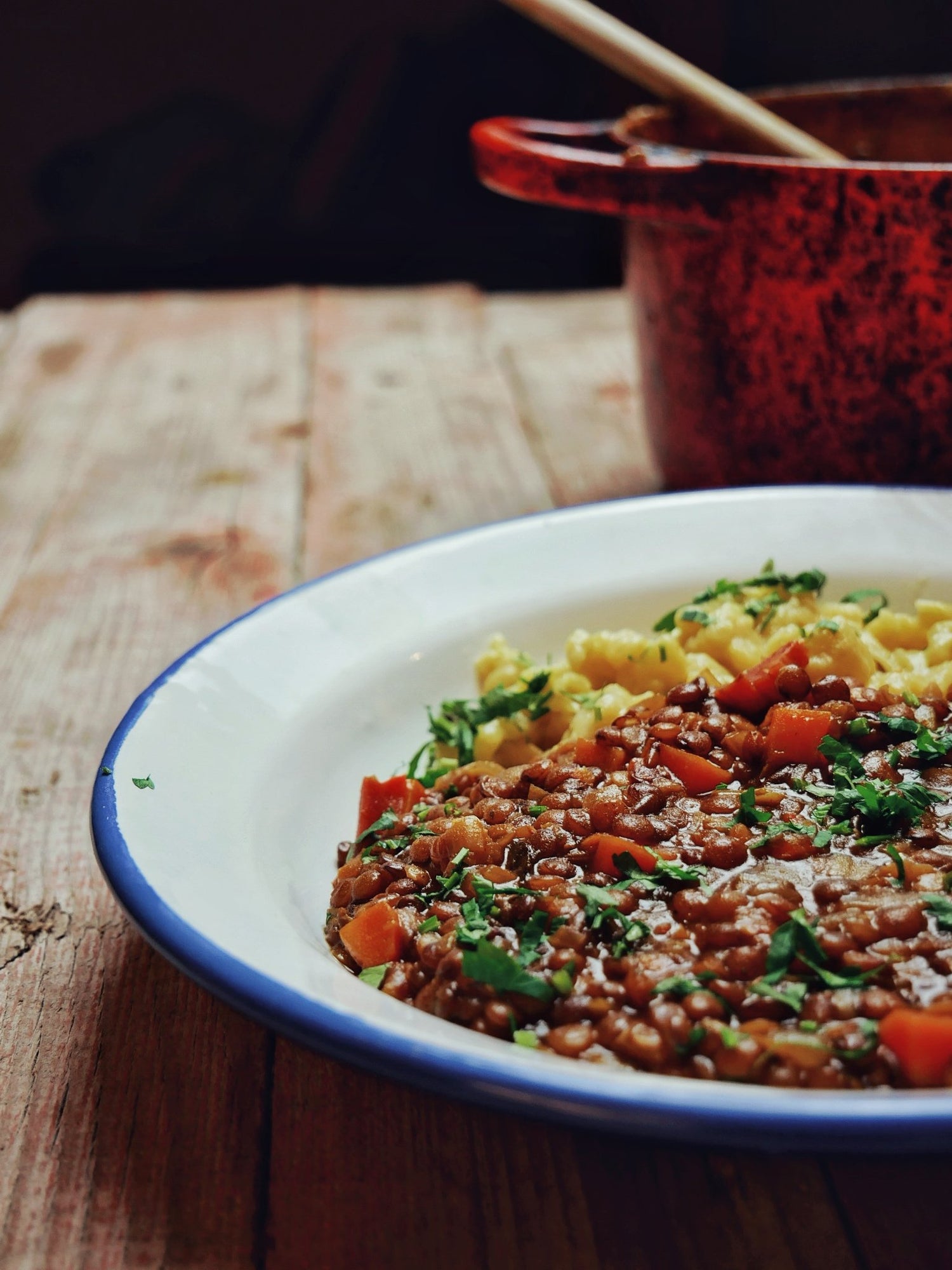 Braune Linsen in Dunkelbiersoße - perfekt zu Spätzlen oder Knödeln